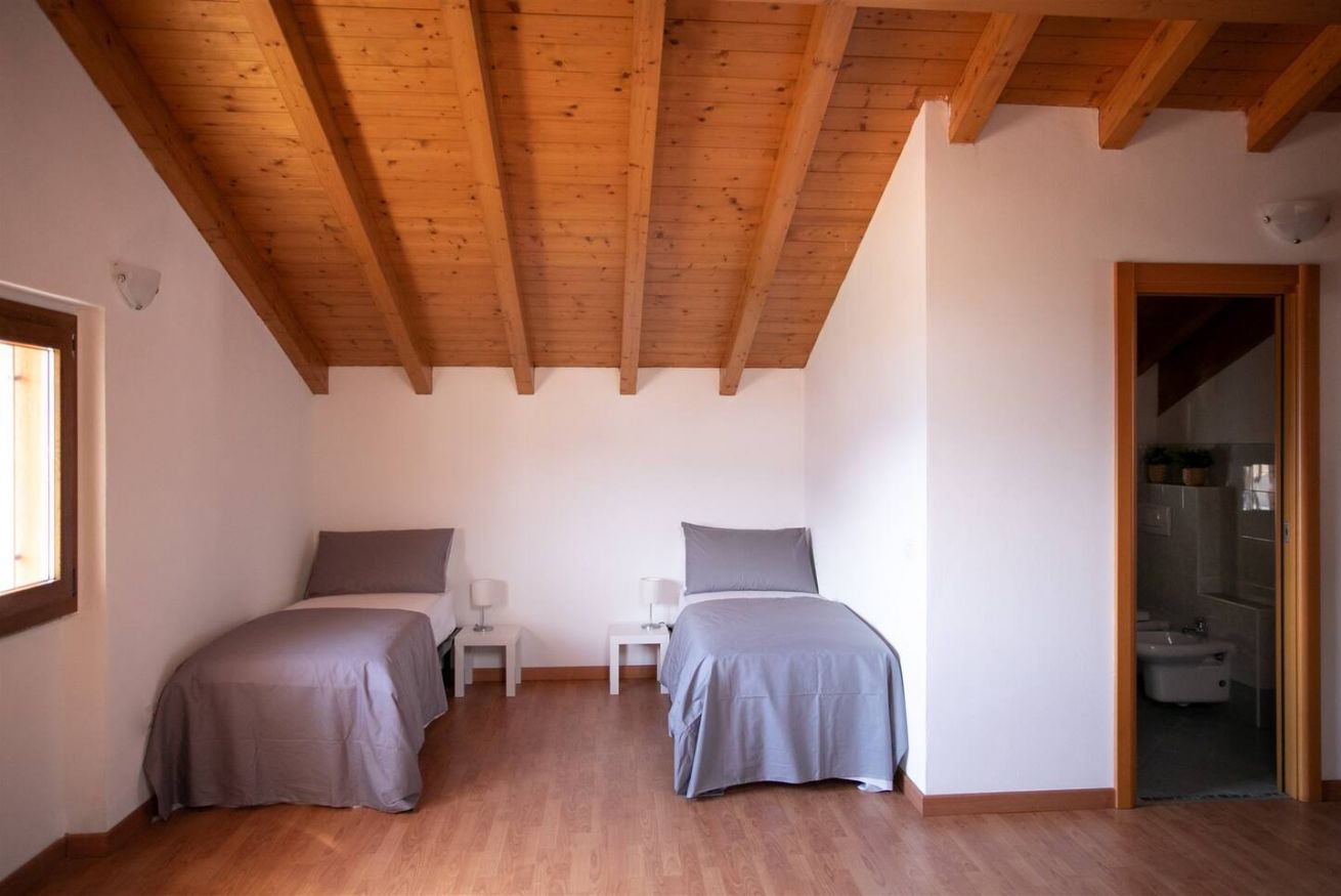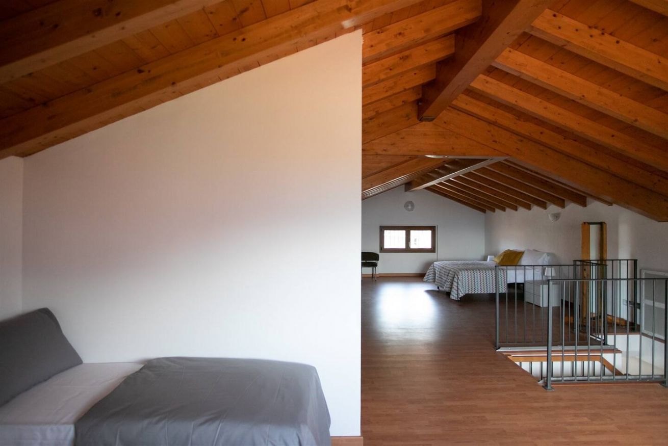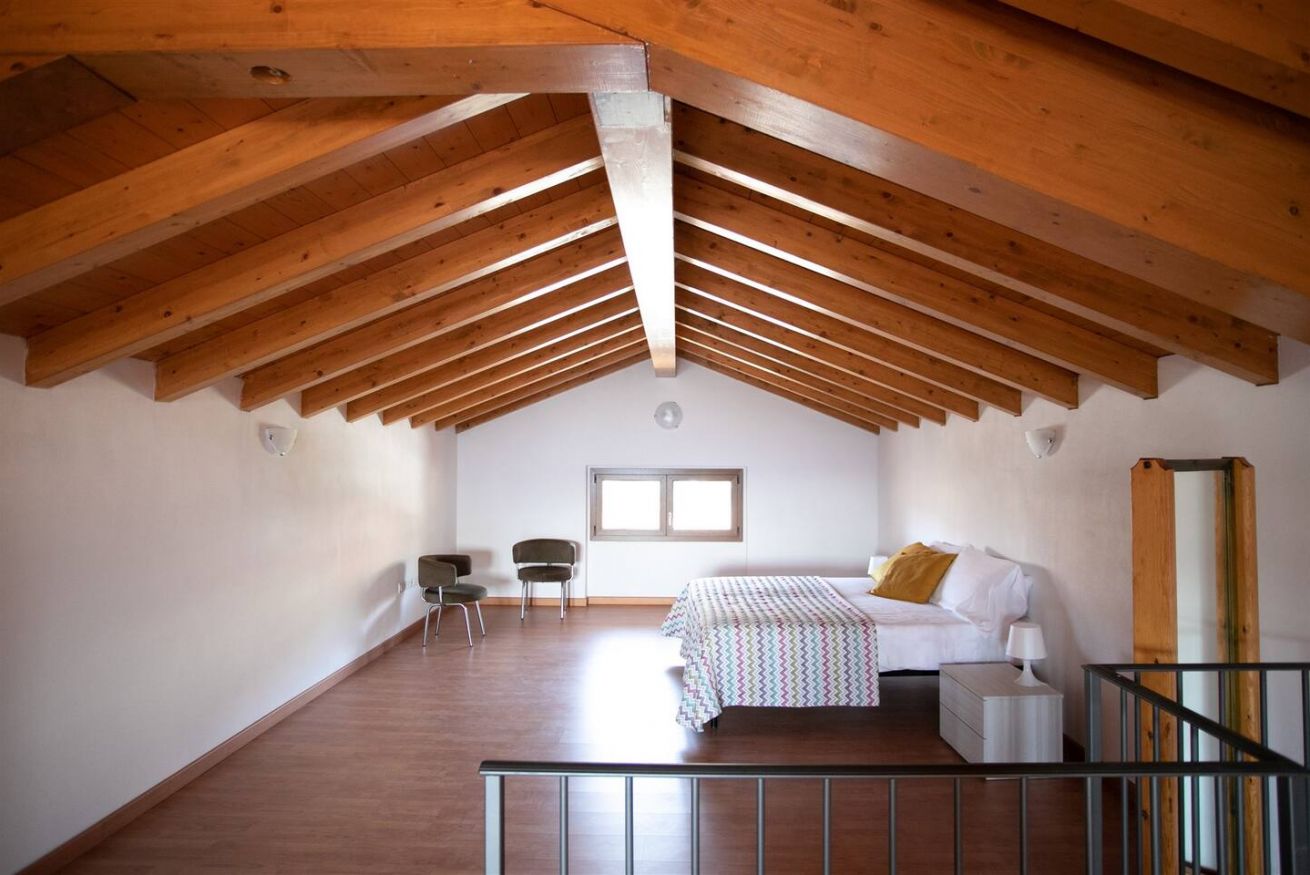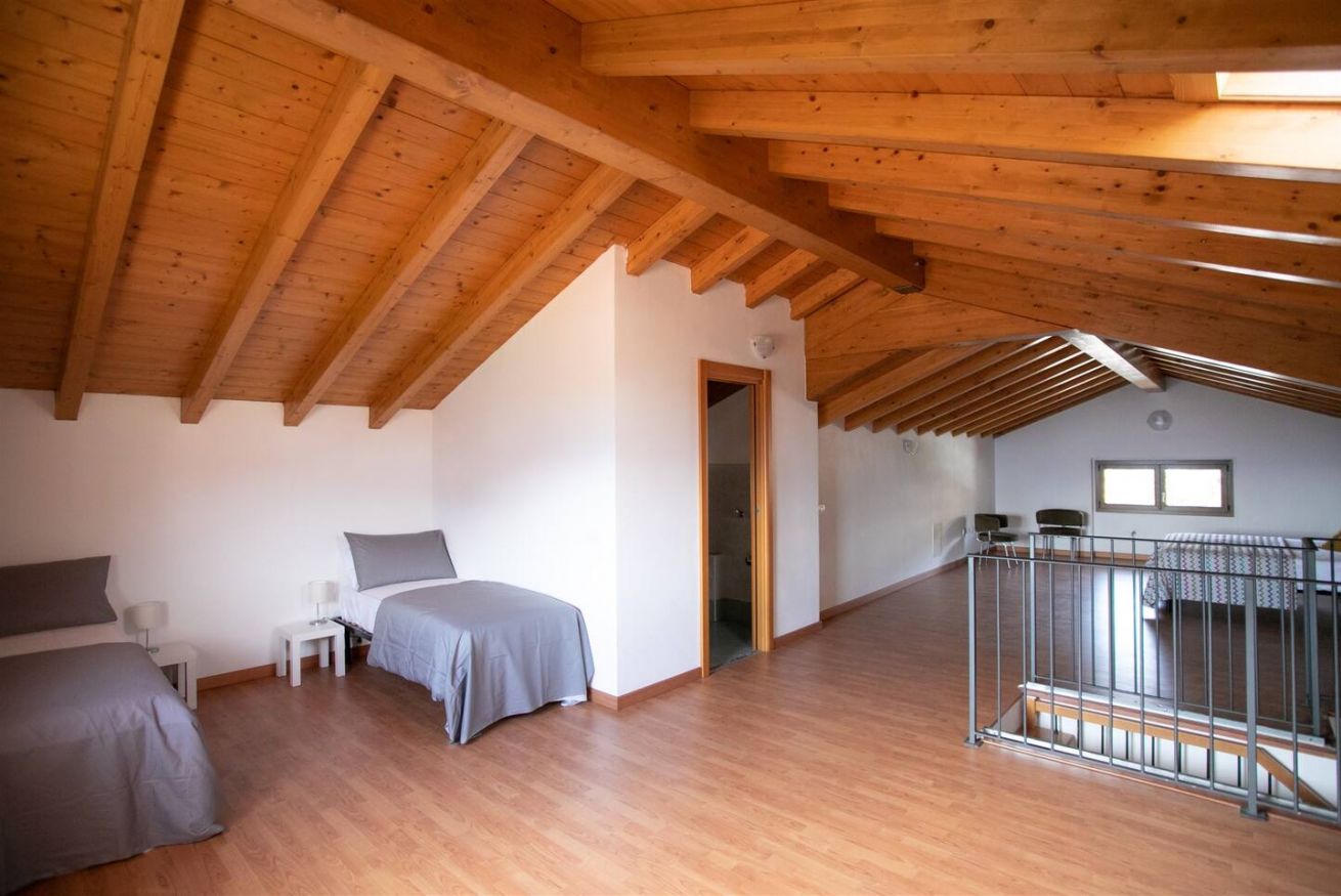 - al piano superiore vi è un ampio open space con un letto matrimoniale e due letti singoli