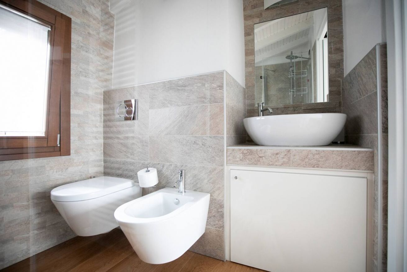 - 2 camere da letto matrimoniali ciascuna con il proprio bagno in pietra naturale con spaziosa doccia, entrambe con vista lago.