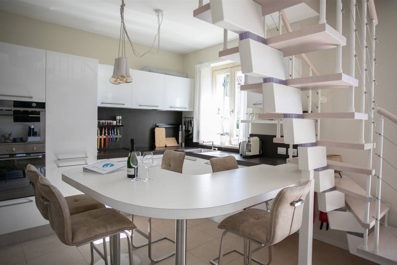 Inoltre è presente un garage dal quale si può accedere all'appartamento salendo una scala, ed è possibile accedere alla piscina del residence con zona solarium con vista sul lago d'Iseo.