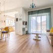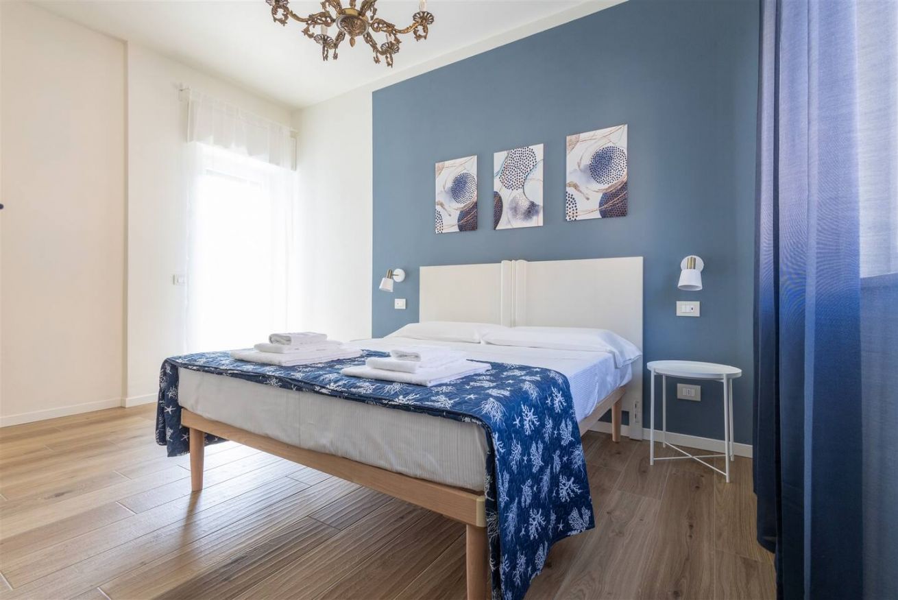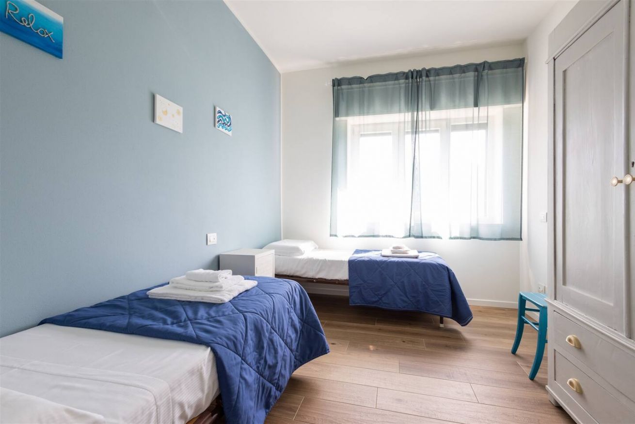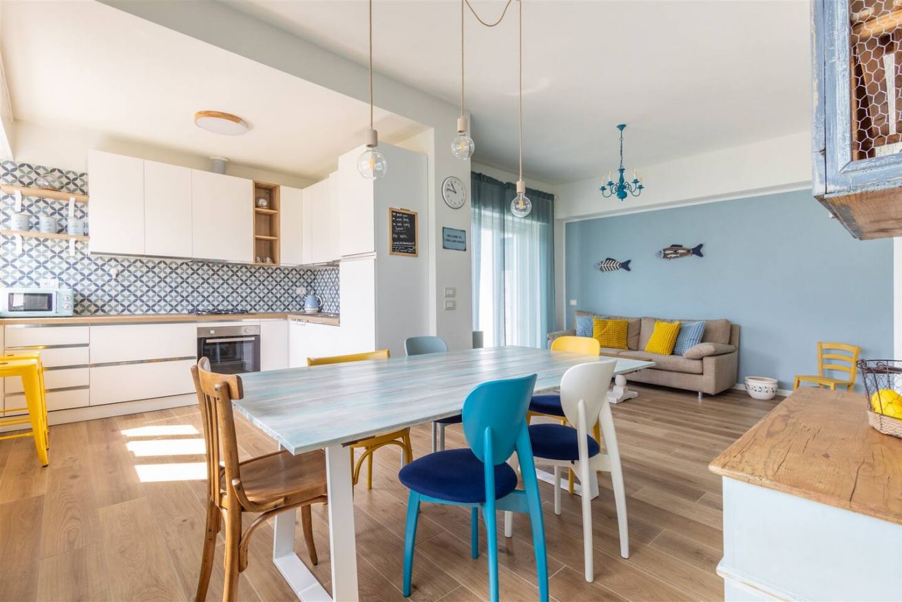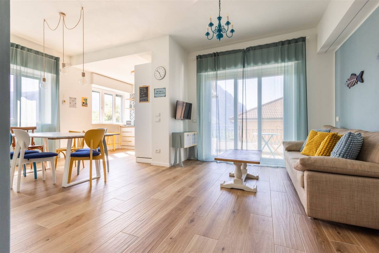 L'alloggio dispone di una camera matrimoniale, due camere con due letti singoli ciascuna, una zona giorno open space con cucina attrezzata e salotto, e un balcone vista lago con tavolino per colazioni e aperitivi all'aria fresca.