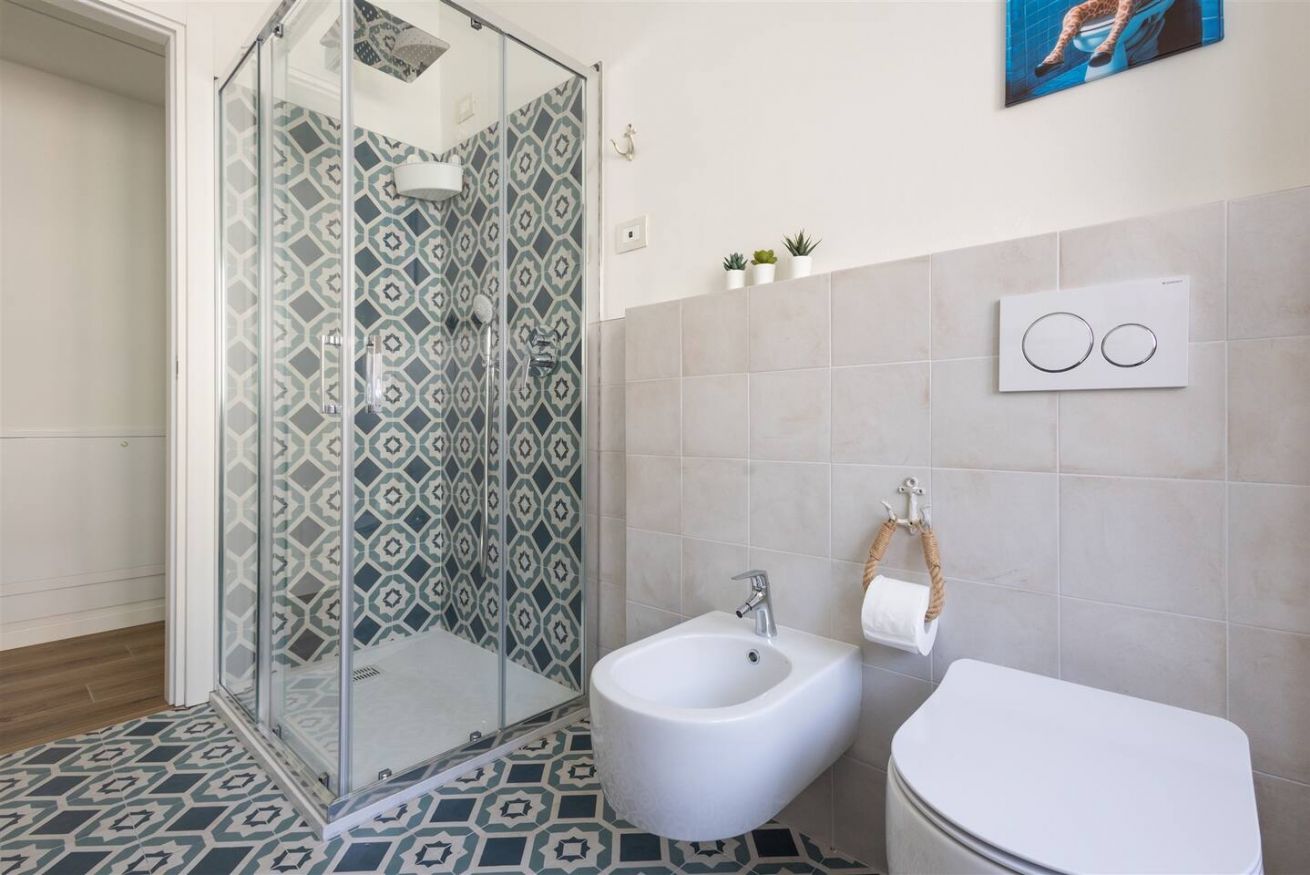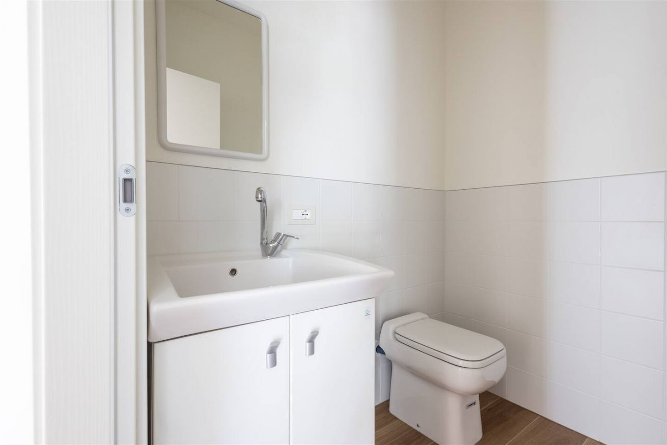 Completano la proprietà un bagno con doccia, un secondo bagno/lavanderia con WC e un comodo posto auto privato all'aperto.