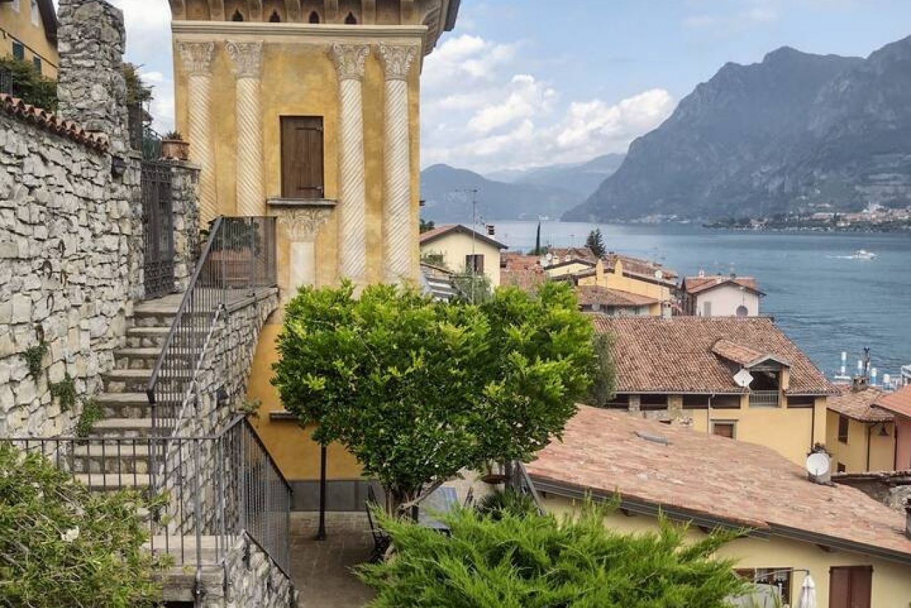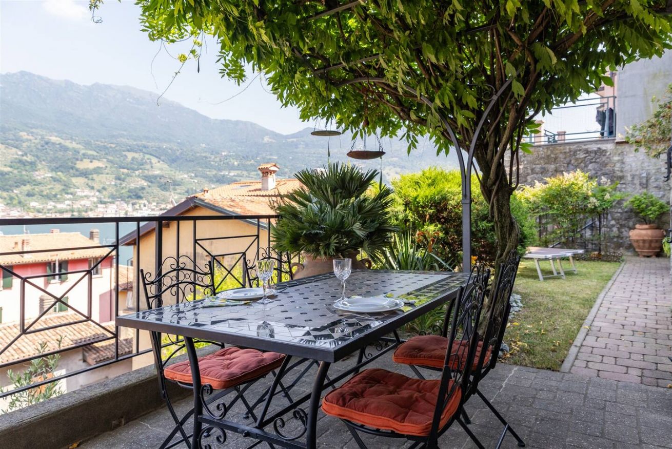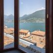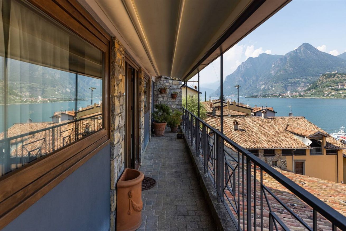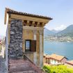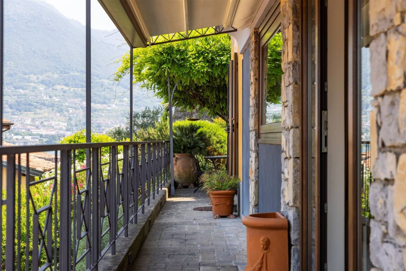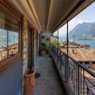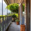 - Balconata laterale con piante ornamentali e vista sui tetti del borgo e il lago