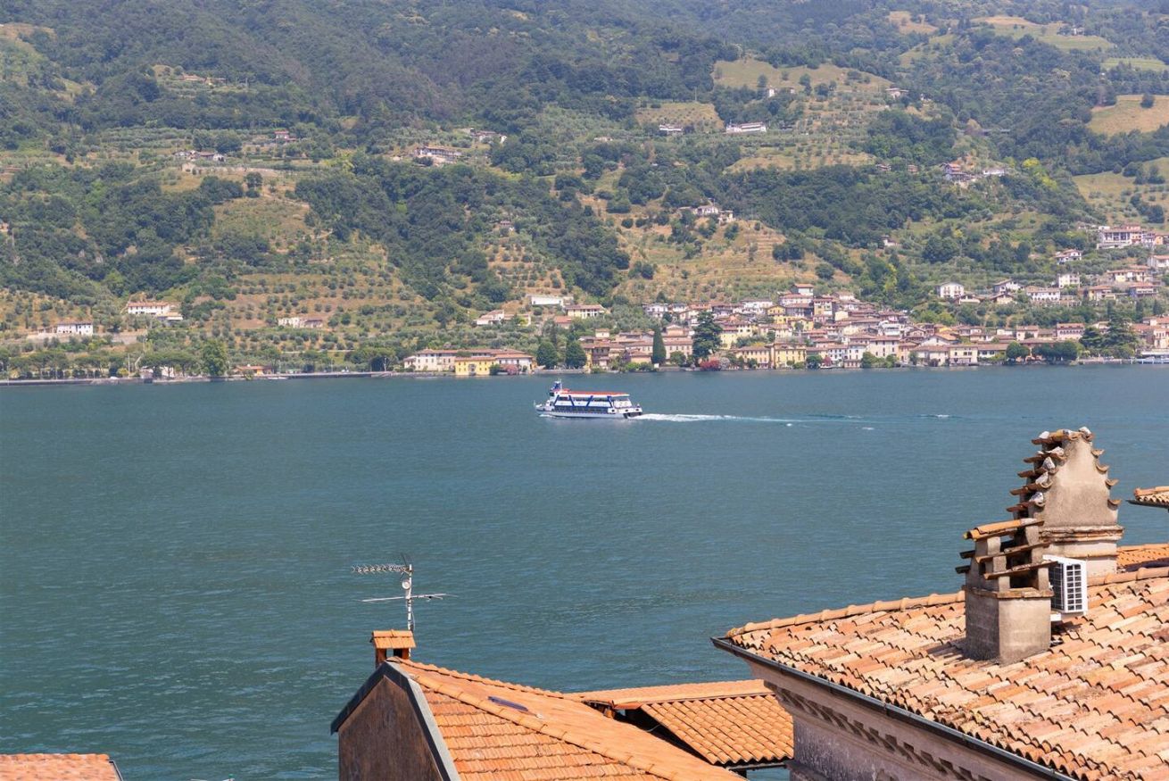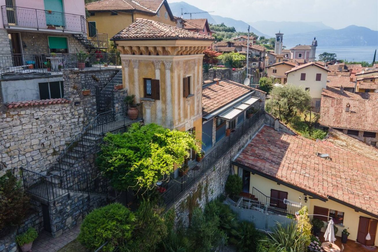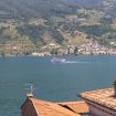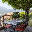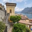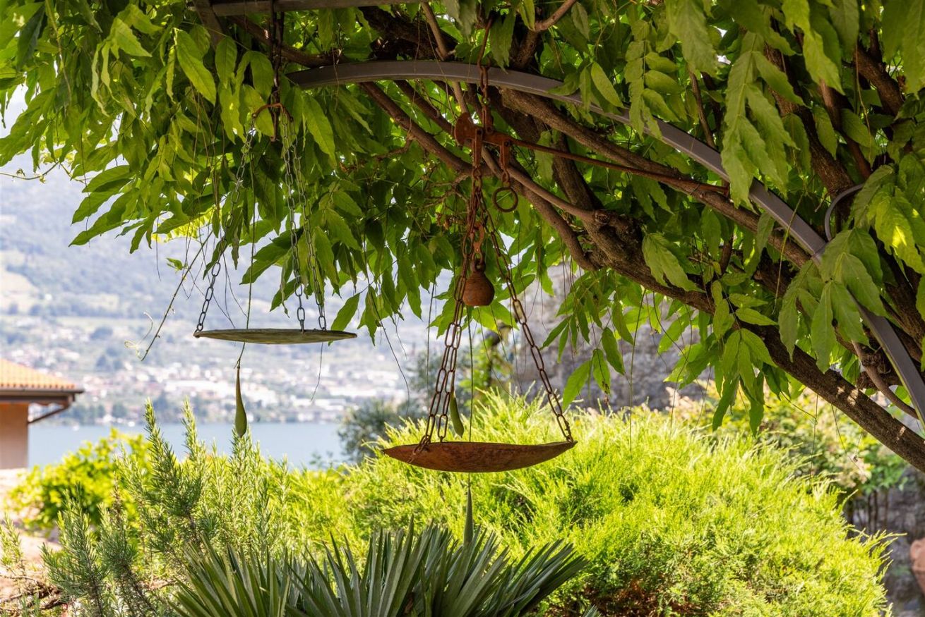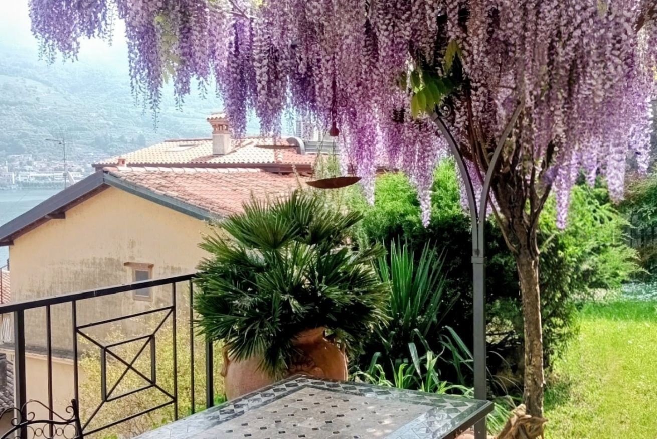 - Balconata laterale con piante ornamentali e vista sui tetti del borgo e il lago