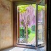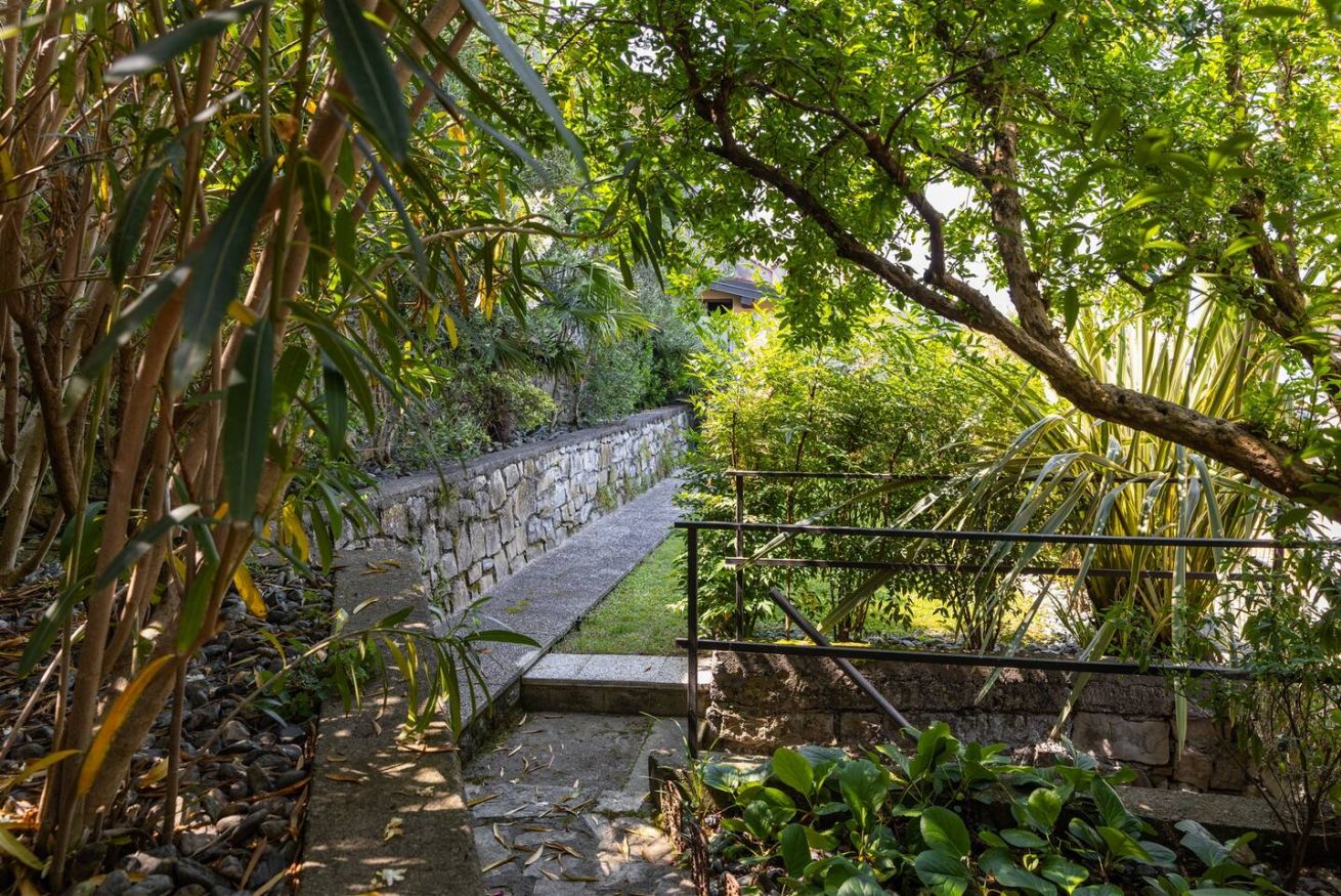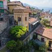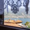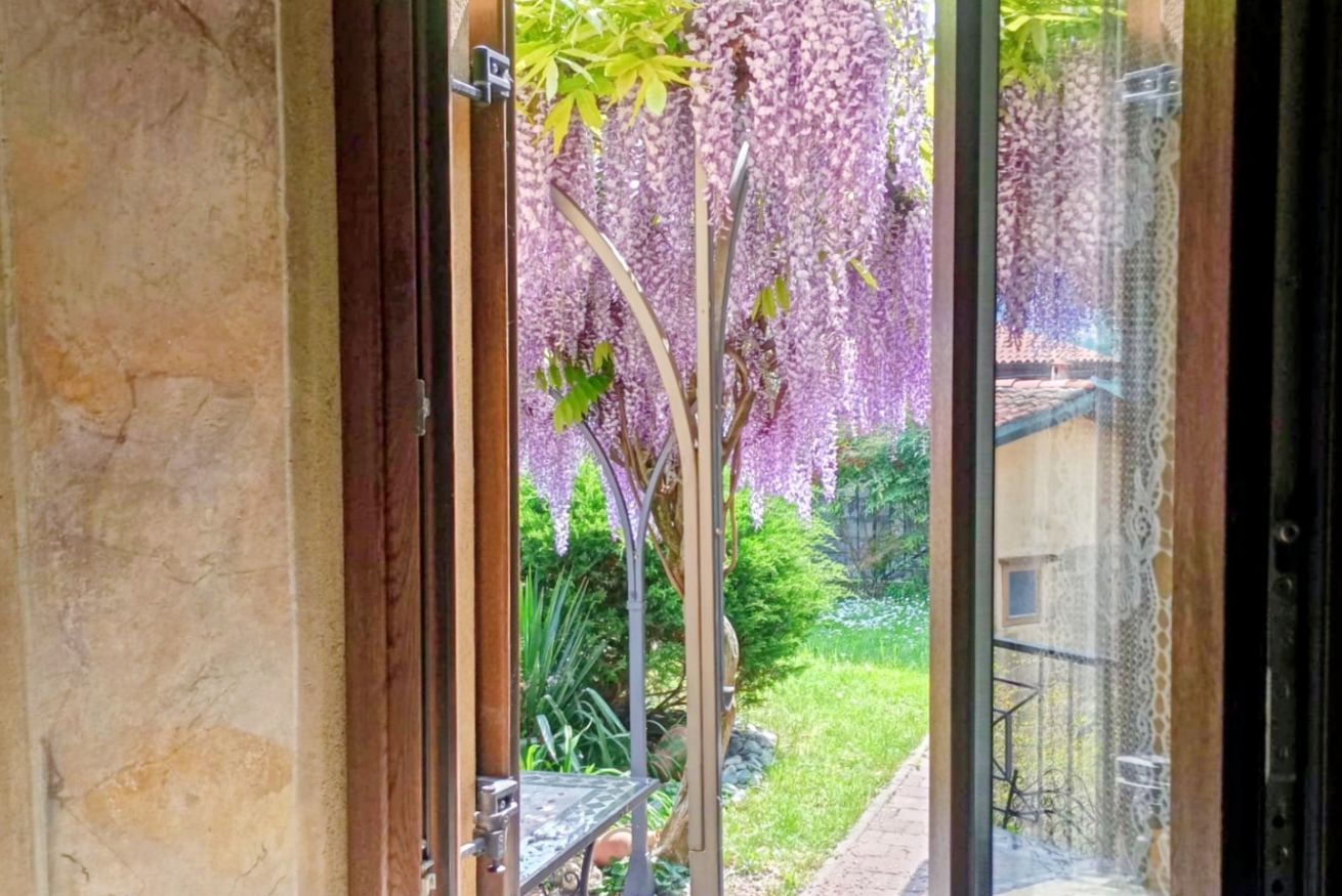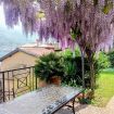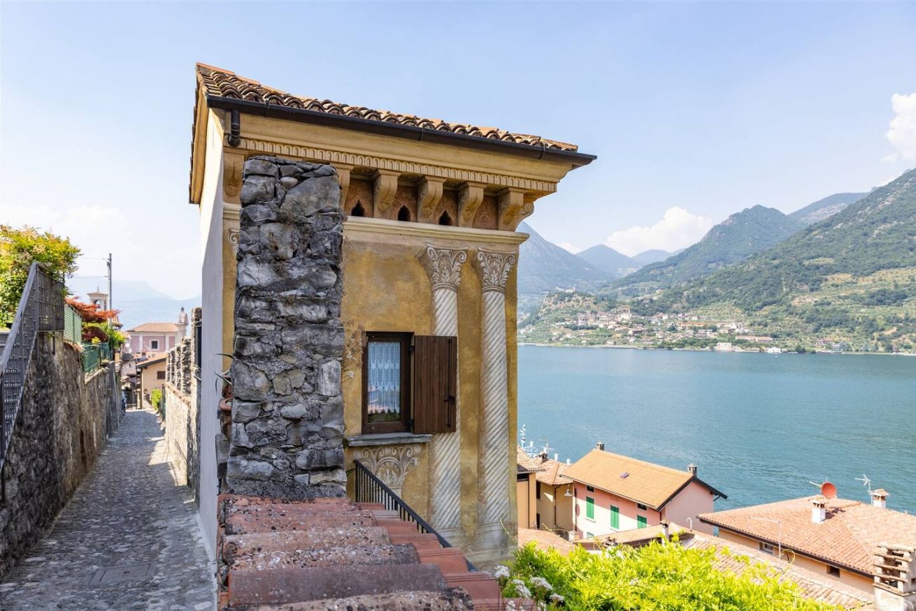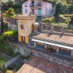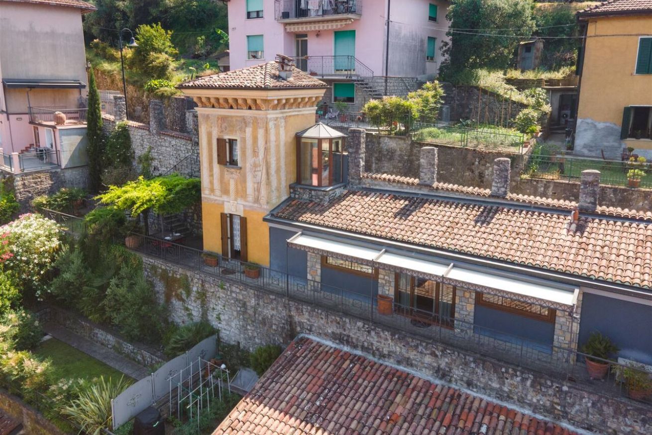 - Balconata laterale con piante ornamentali e vista sui tetti del borgo e il lago
