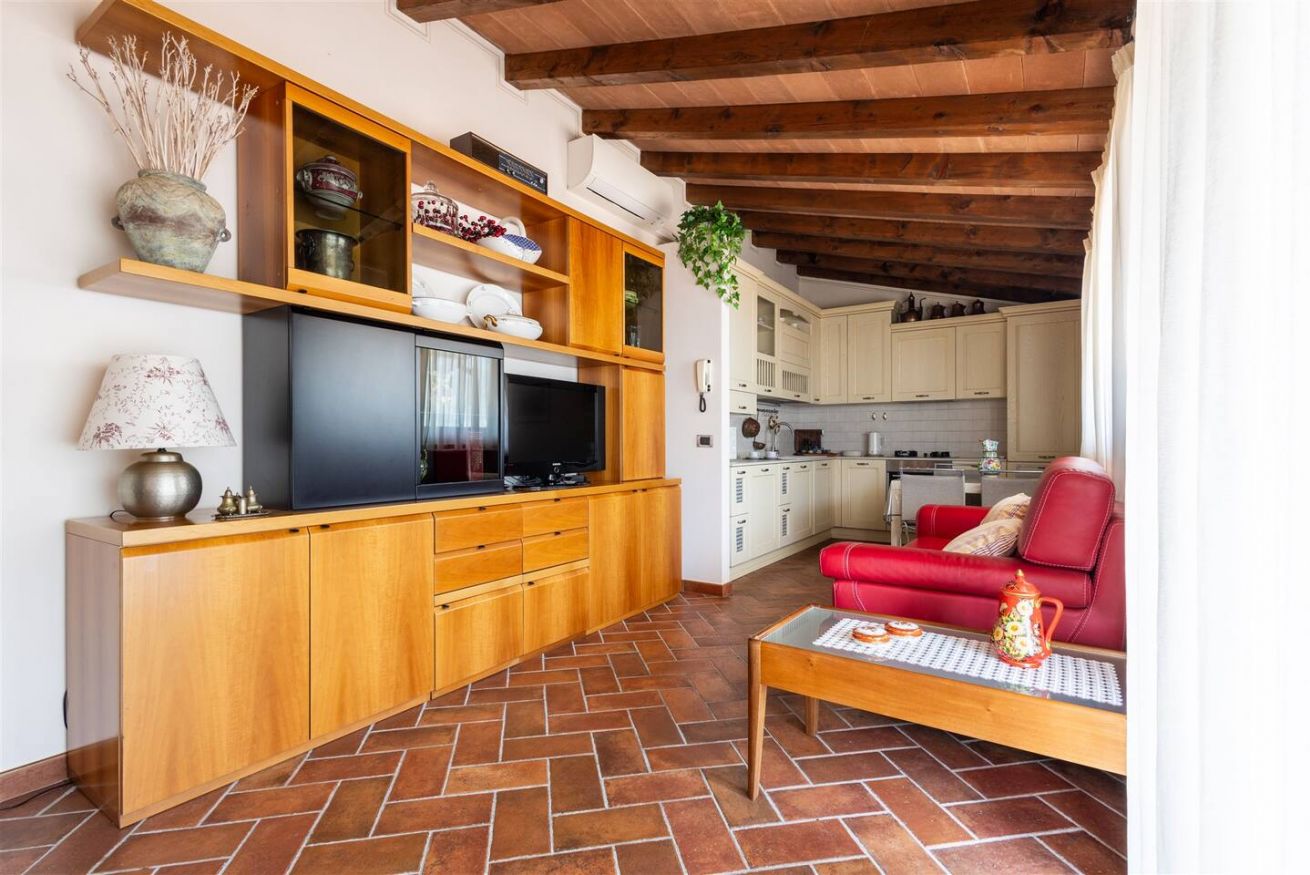 La terrazza panoramica è il cuore pulsante dell'appartamento: uno spazio esterno curato, ideale per colazioni, aperitivi al tramonto o semplicemente per lasciarsi cullare dal suono dell'acqua.