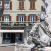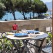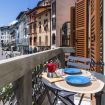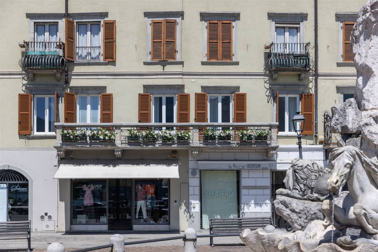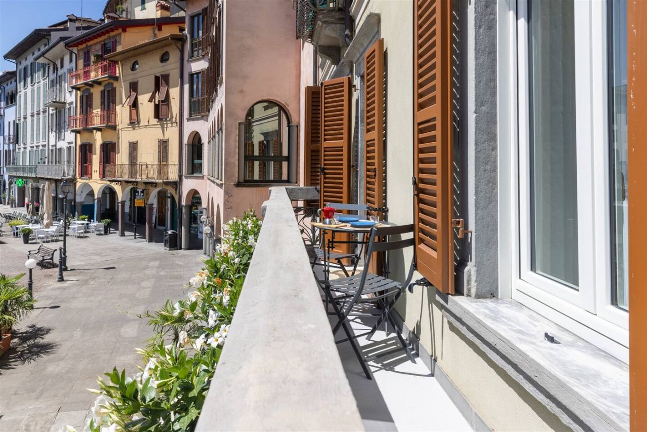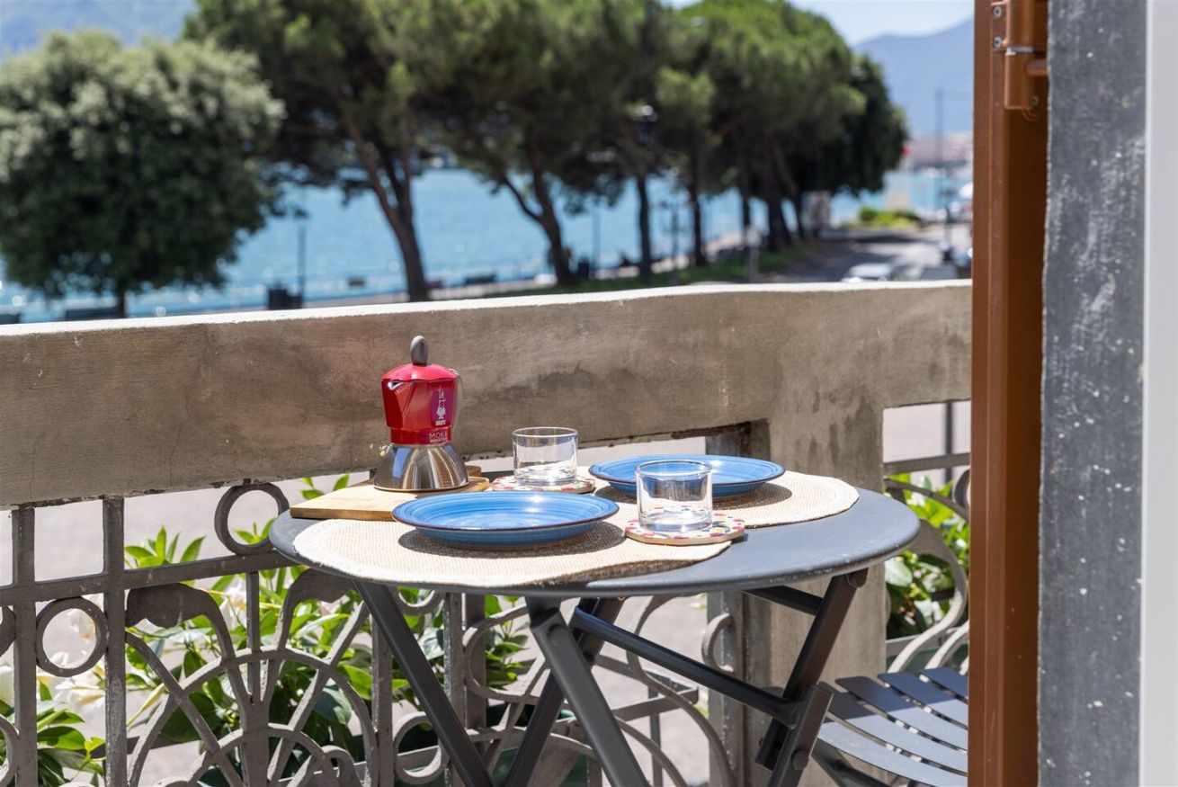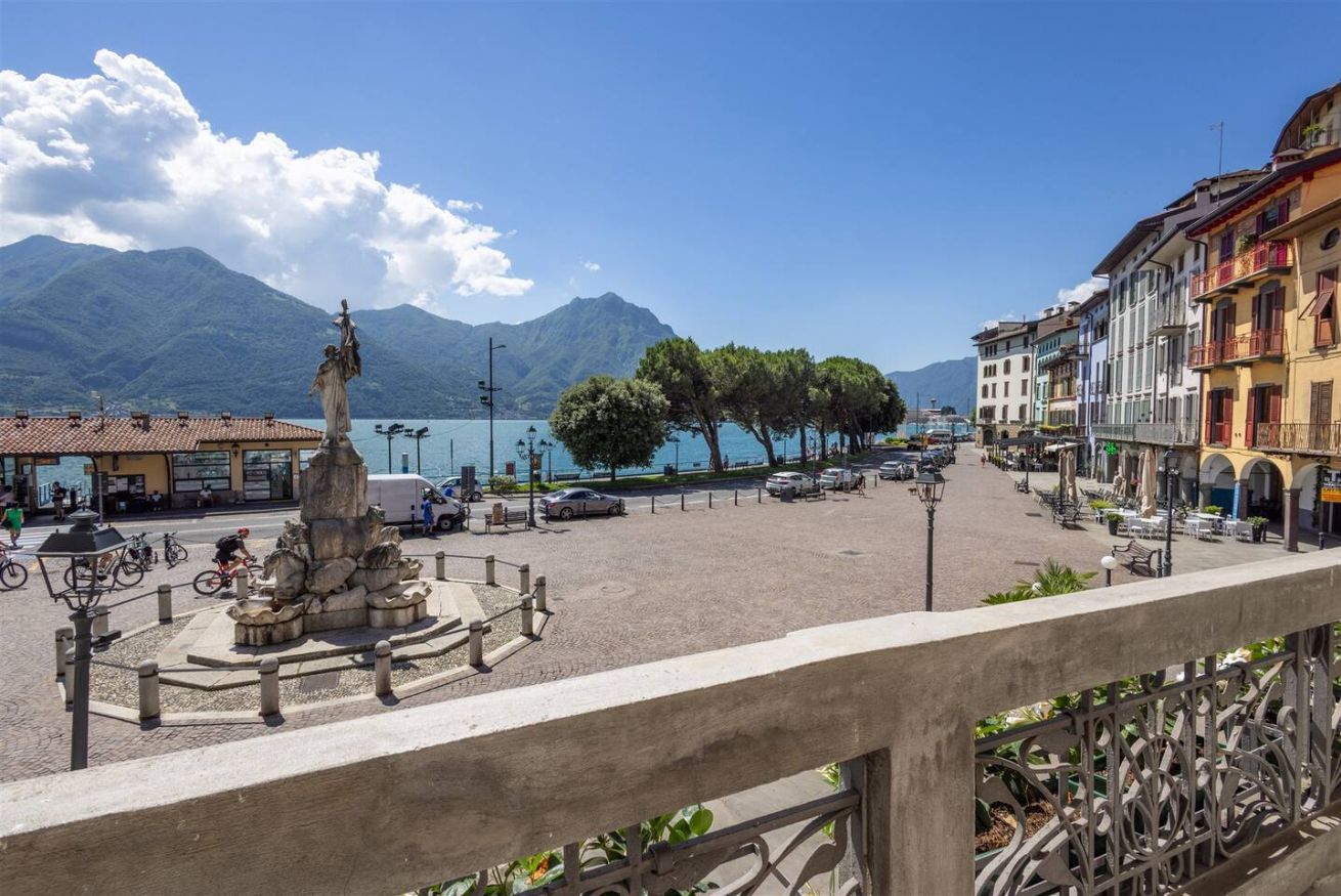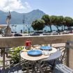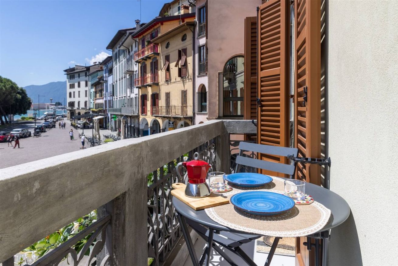 - terrazza con vista lago che si affaccia sulla piazza, con tavolino da esterno