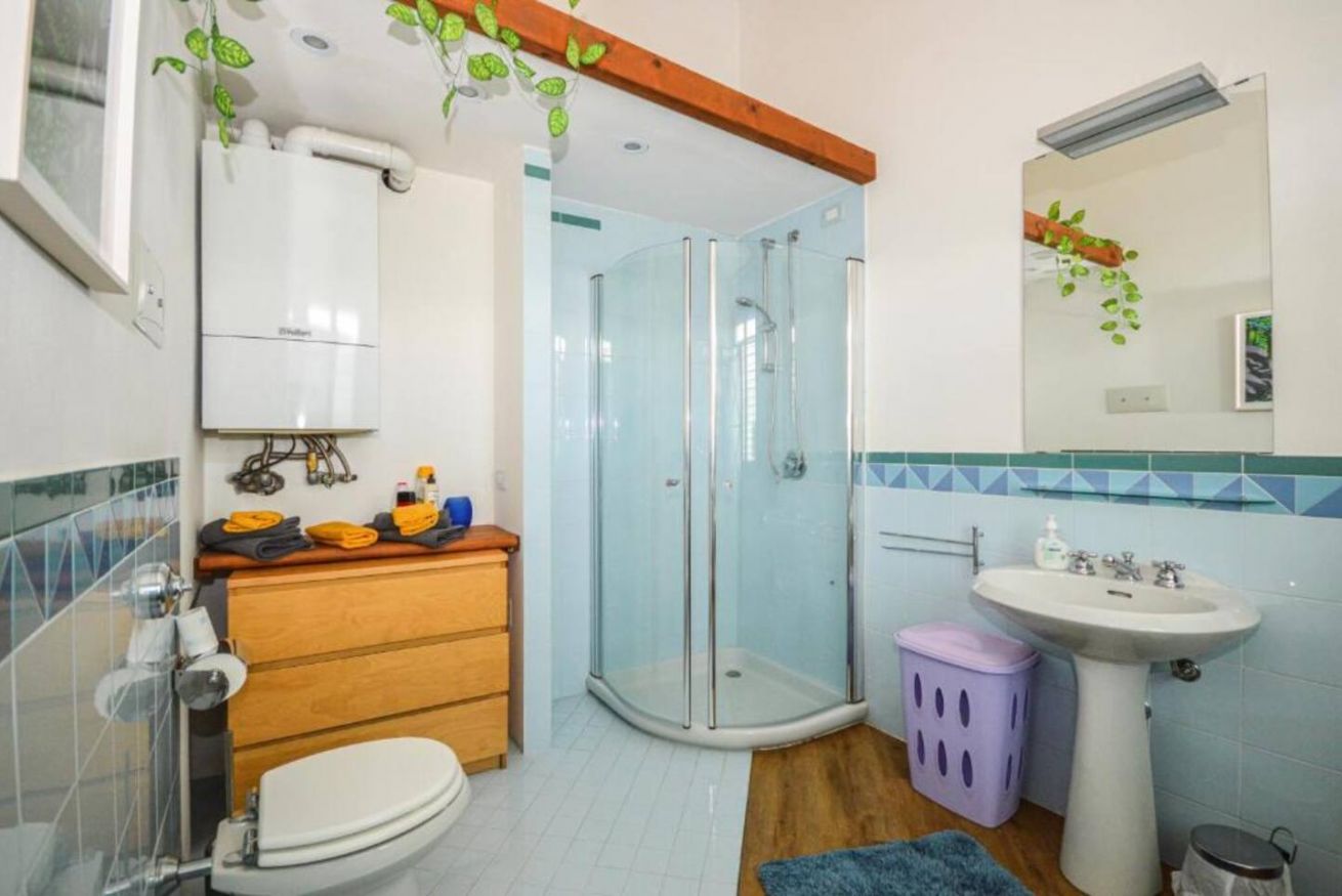 Al piano terra si trova una camera da letto con due letti matrimoniali (160x200 cm) e un bagno completo con doccia, moderno e funzionale.