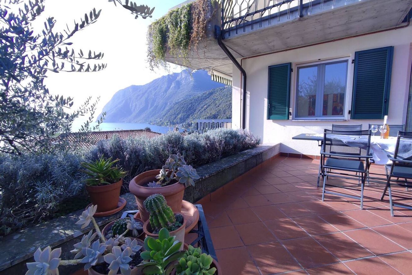 VACANZA ROMANTICA: studio apartment (2 people) with an area of approx. 50 sqm, bathroom with shower, large living area with double sofa bed, single bed and fully equipped kitchen; terrace of 35 m2 with garden furniture and lake view.