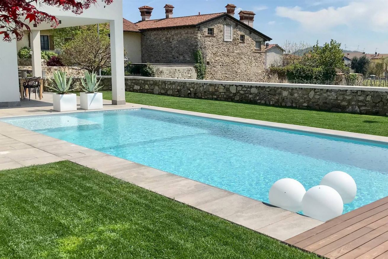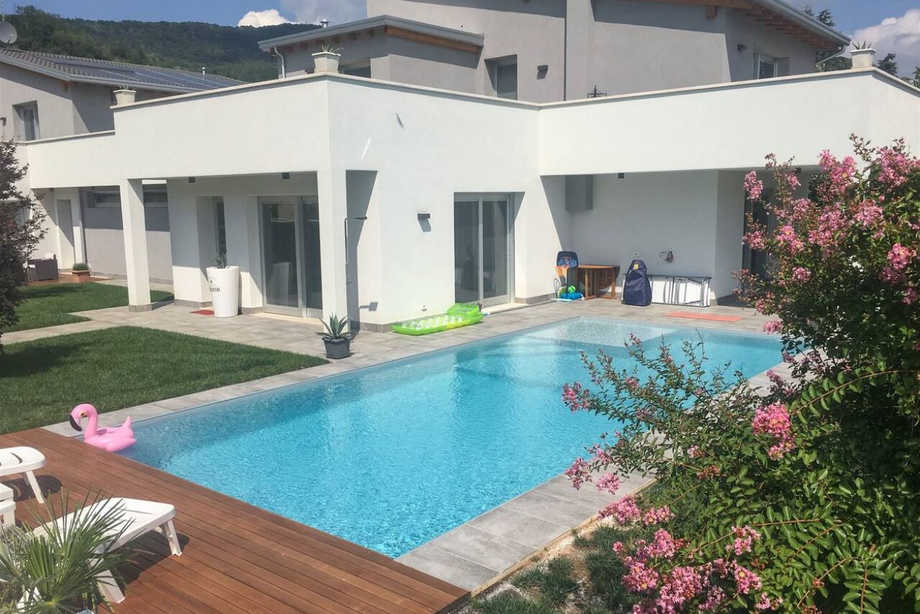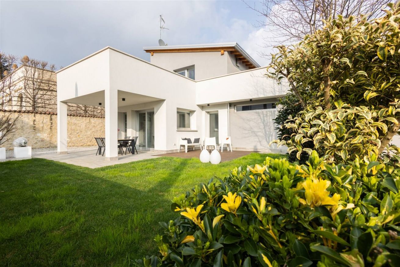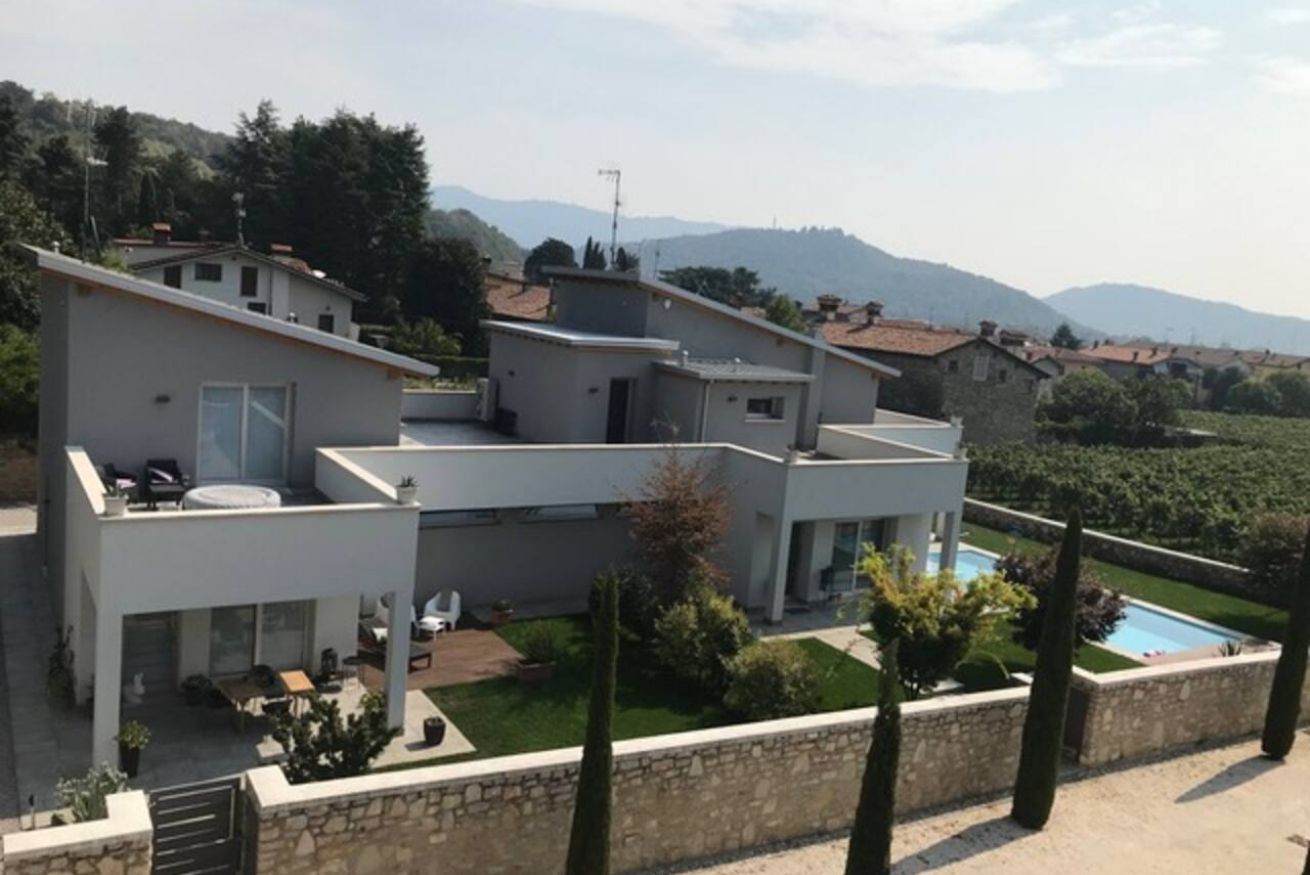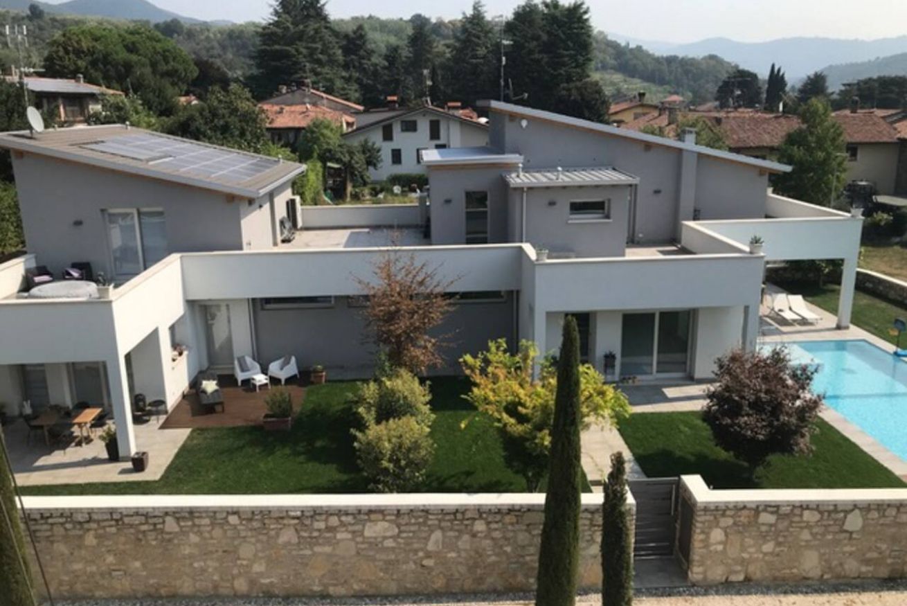 Villa Edwige è una luminosa e raffinata villa bifamliare moderna, dove design contemporaneo, ampi spazi e tranquillità si incontrano in un elegante contesto residenziale vicino al lago d'Iseo.