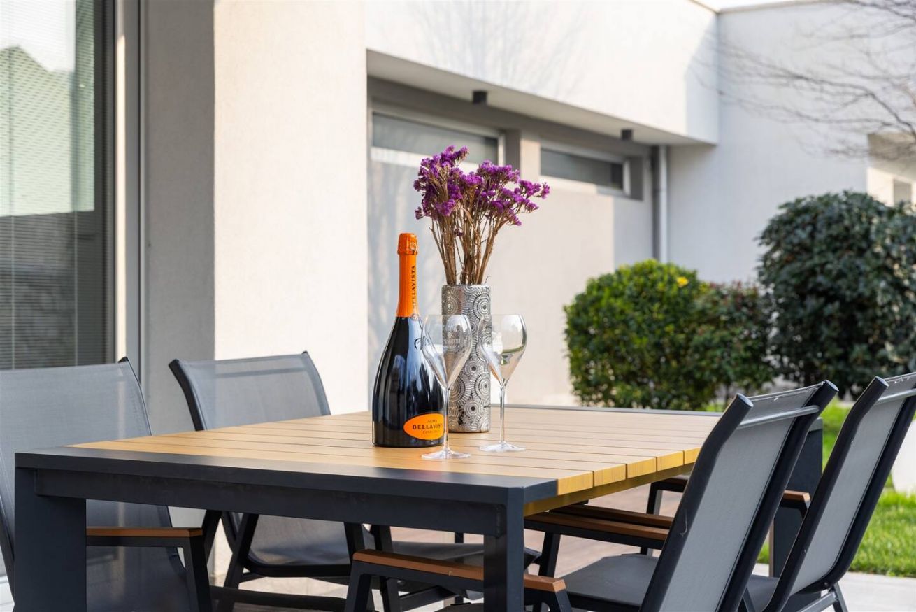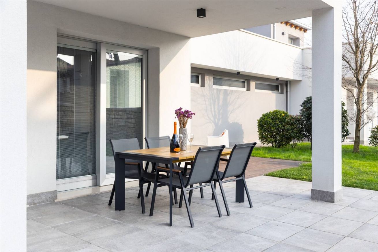 All'esterno, il patio arredato e il giardino privato ad uso esclusivo offrono uno spazio ideale per pranzi all'aperto, momenti di relax o serate tranquille in un contesto riservato.