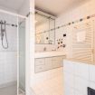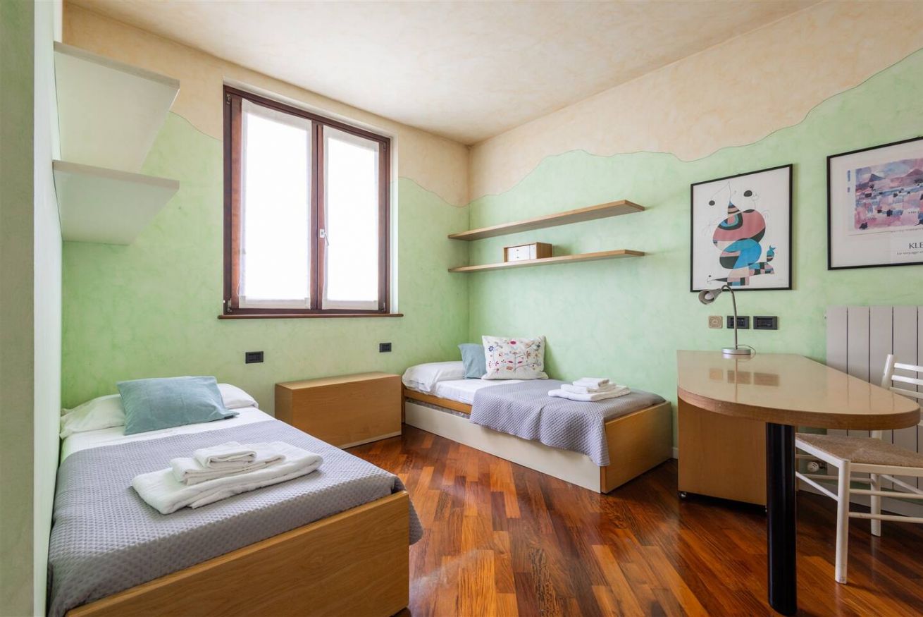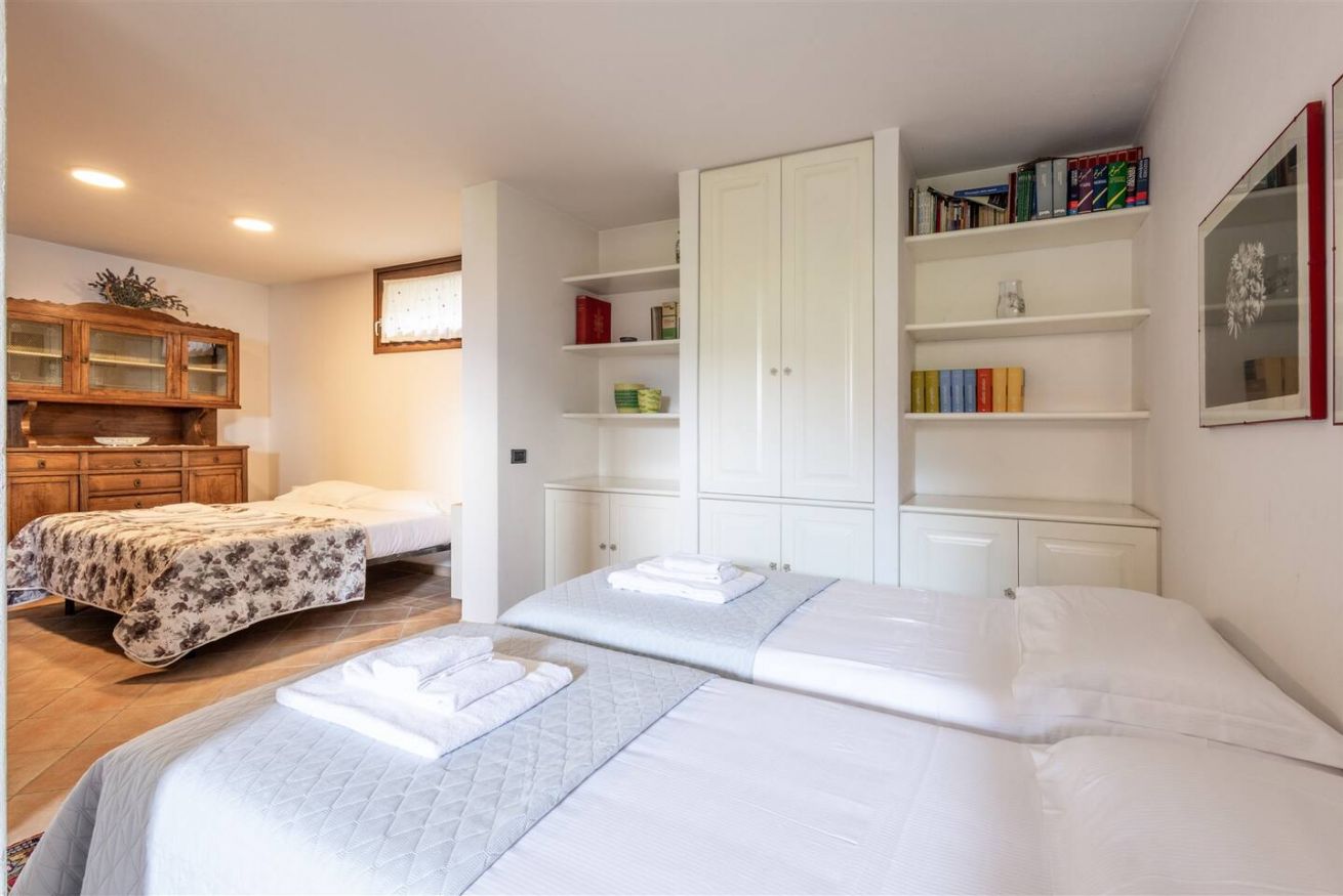 - Al secondo piano, troviamo due camere: una matrimoniale con cabina armadio privata e una con due letti singoli, accompagnate da due bagni moderni.